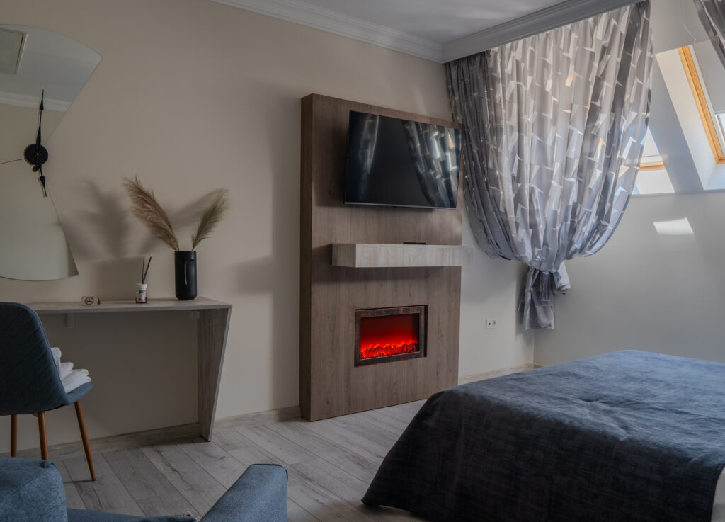 Toate aprtamentele noastre dispun de următoarele facilități: Aer condiționat centralizat cu termostat reglabil în camera Chicineta complet utilată (veselă, tacâmuri, pahare, espressor de cafea cu capsule, prăjitor de pâine, sandwich maker, cană fierbător) Baie cu duș dotată cu săpun lichid, gel de dus, șampon, hârtie igienica, papuci de unică folosință, prosoape albe din bumbac premium.